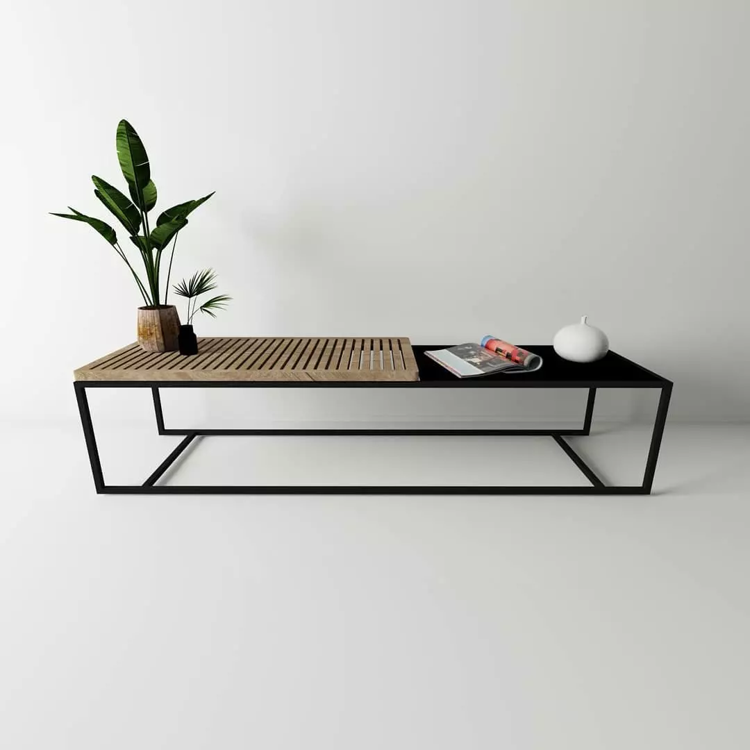 Esta mesa es el complemento perfecto para tu sala. Está fabricada en hierro negro y madera, lo que le da un toque industrial y acogedor. Tiene una superficie amplia y resistente, donde podrás colocar tus objetos decorativos, libros, revistas o lo que quieras. Su diseño es sencillo y elegante, y se adapta a cualquier estilo de decoración.